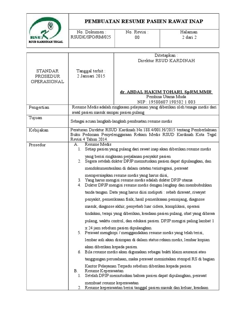 Pembuatan Resume Pasien Rawat Inap Pdf