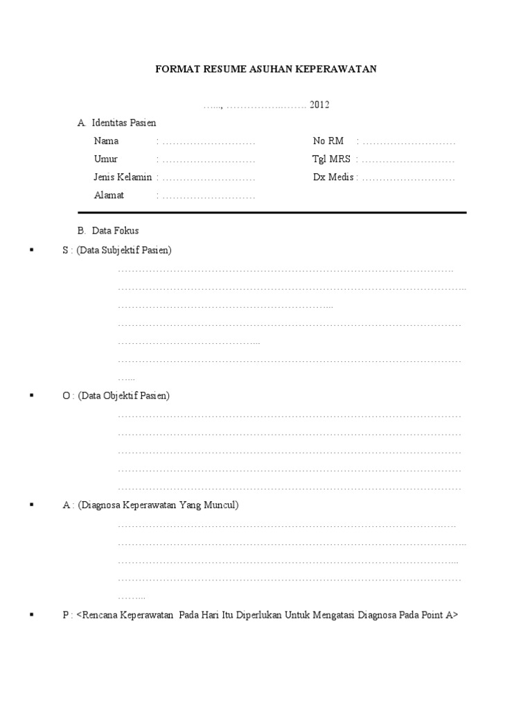 Format Resume Asuhan Keperawatan Pdf